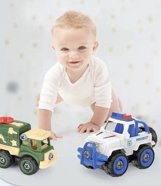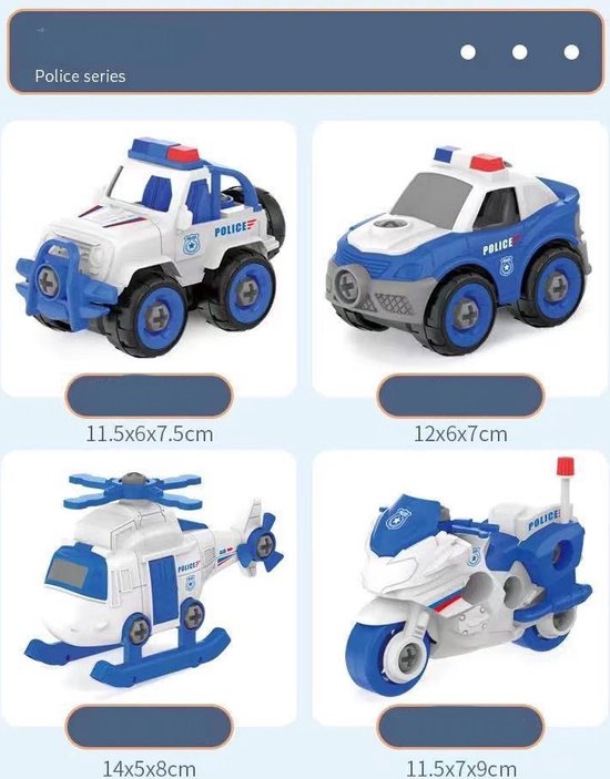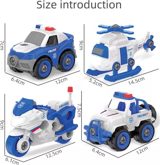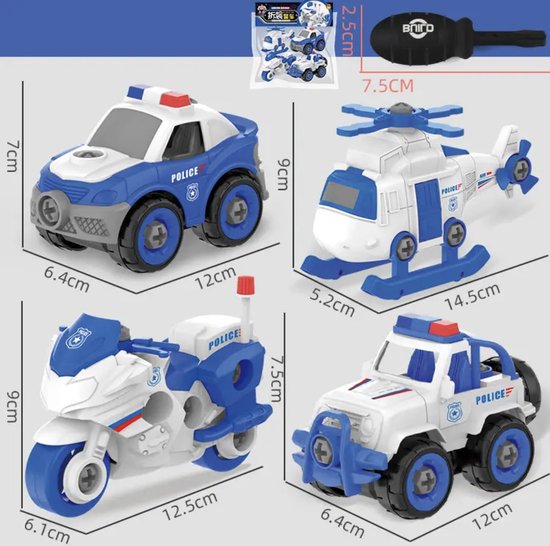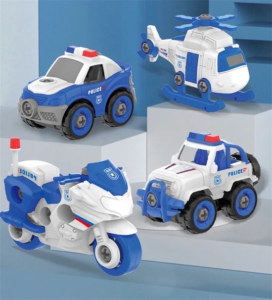 Bouwvoertuigen politie speelgoedset met bijgeleverde schroevendraaier – bouwset kinderspeelgoed – educatief speelgoed