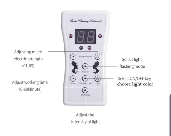 Het Led gezichtsmasker biedt lichttherapie voor jouw huid, en doet dit door middel van 7 verschillende kleuren licht. Elke kleur pakt een ander probleem aan en geeft een andere intensieve verzorging. Hieronder hebben wij de functies per kleur uiteen gezet: