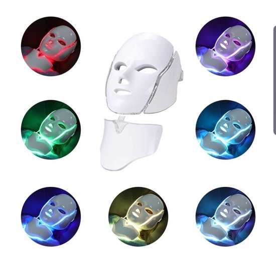 Led licht gezichtsmasker met hals gedeelte – 7 kleuren voor 7 behandelingen -Licht therapie – Gezichtstherapie – Led mask