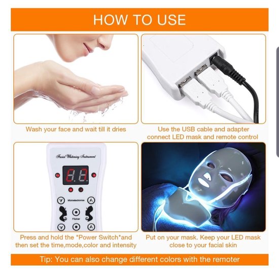 • 2 x Led Light Mask; 1 voor het gezicht & 1 voor de hals