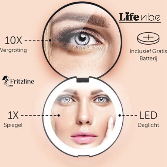 LifeVibe© Compacte Make-up Spiegel met LED Verlichting - 10x Vergroting