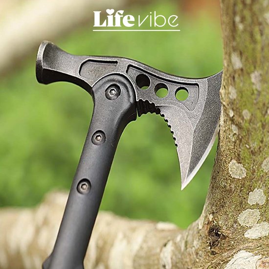 Deze bijl is ontworpen voor avonturiers, kampeerders en survivalisten. Gebruik het om brandhout te kloven, onderkomens te bouwen of zelfs als een tactisch verdedigingsmiddel in extreme situaties. Dankzij het compacte formaat en het lichte gewicht van slechts 700 gram is hij eenvoudig mee te nemen in je uitrusting zonder onnodige ballast.