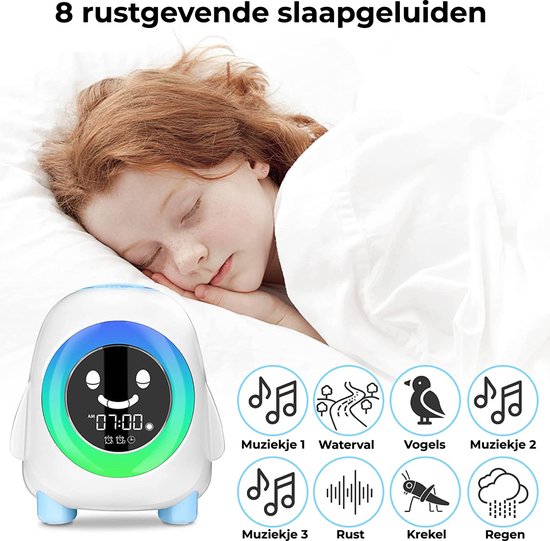 De slaaptrainer is niet zomaar een wekker. De kinderwekker heeft een positief effect op de ontwikkeling van onder anderen het tijdsbesef en een gezond slaapritme. Met 3 verschillende kleuren leert het kind spelenderwijs wanneer het tijd is om te gaan slapen, nog even in bed te blijven liggen of wanneer het tijd is om op te staan.