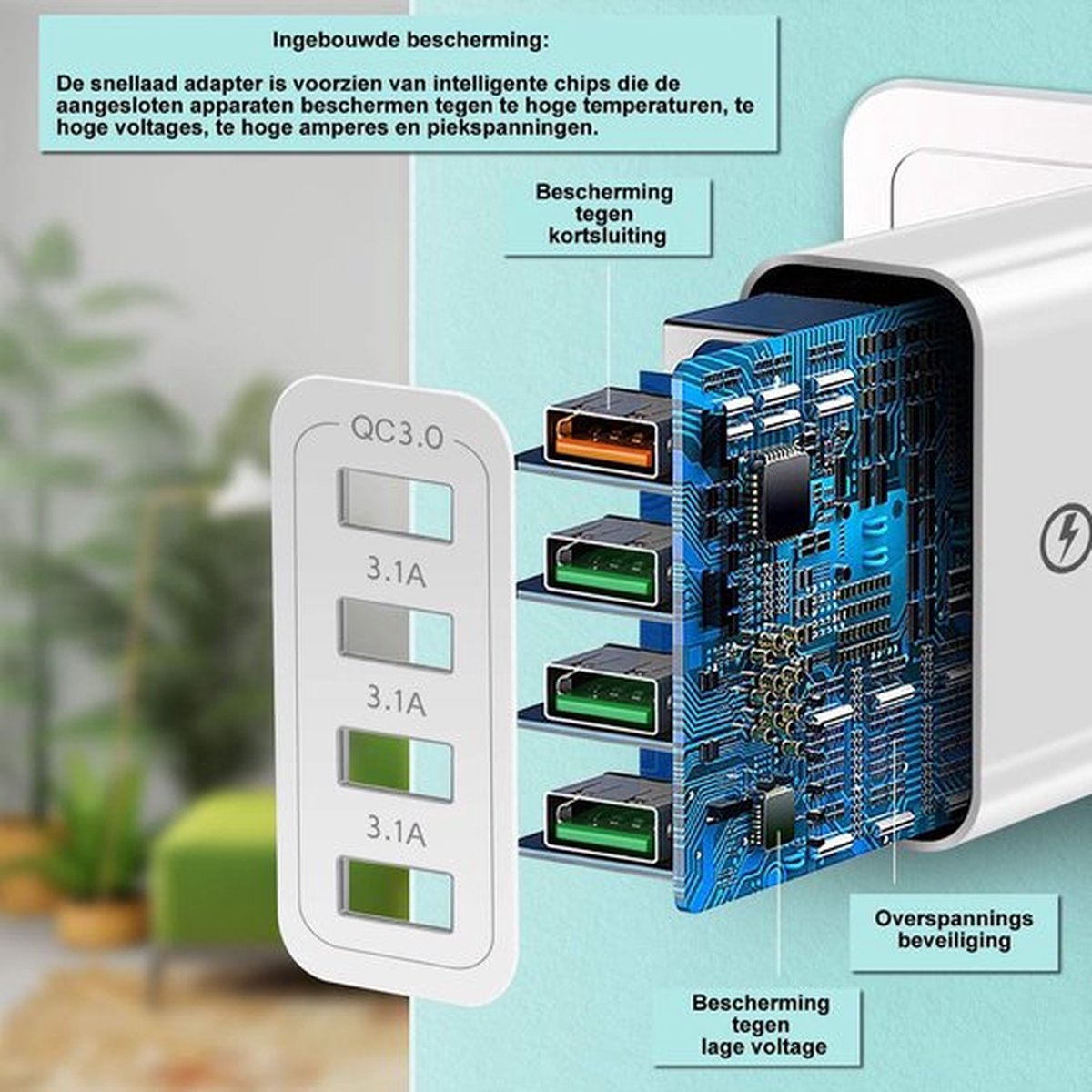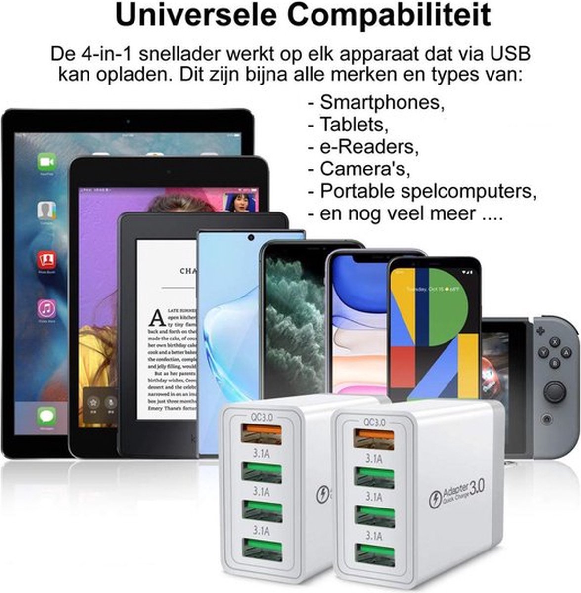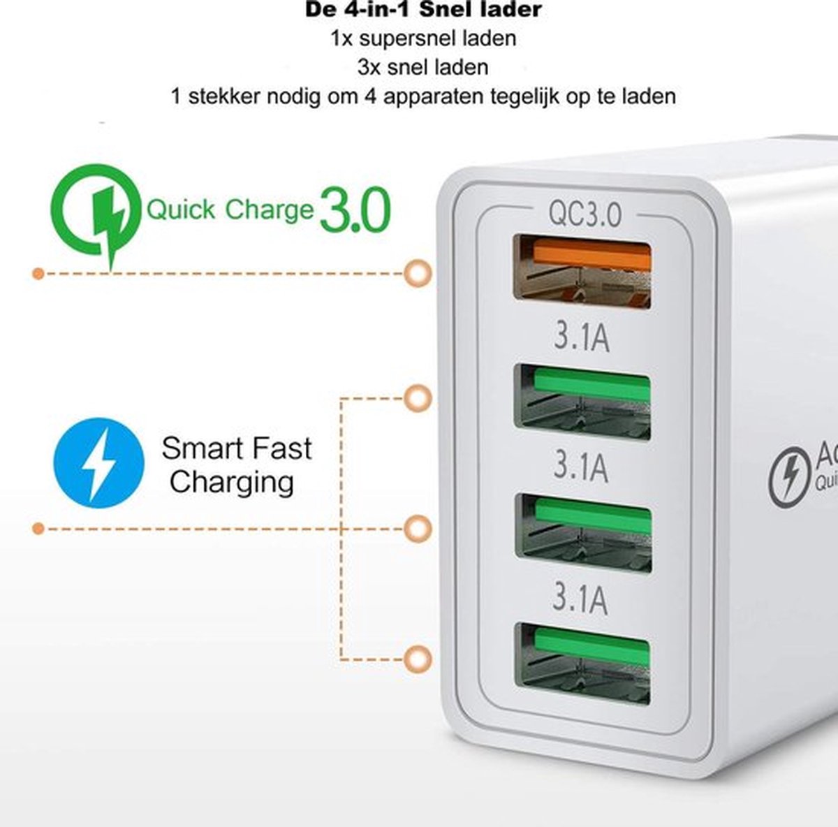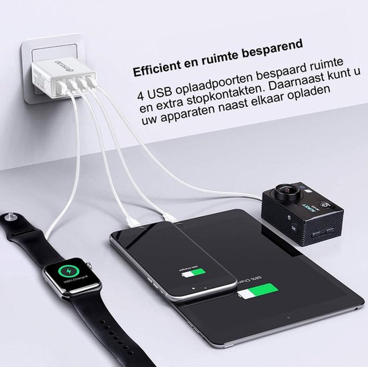 4 poorten leveren hoge laadsnelheid voor alle apparaten.